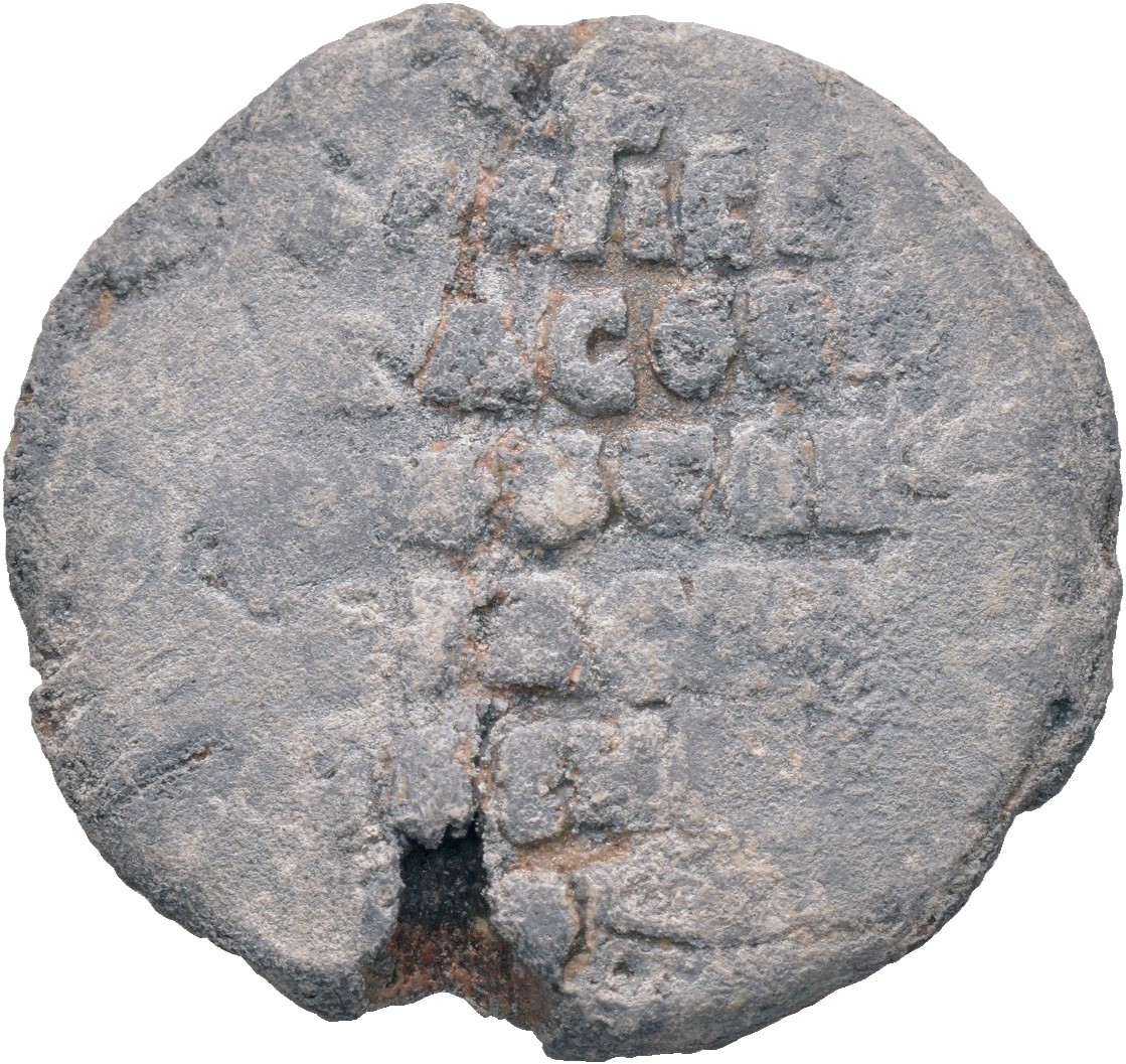 Poor state of preservation. Only the letters on the channel swelling are partially preserved. The identification is based on the above better preserved specimen.