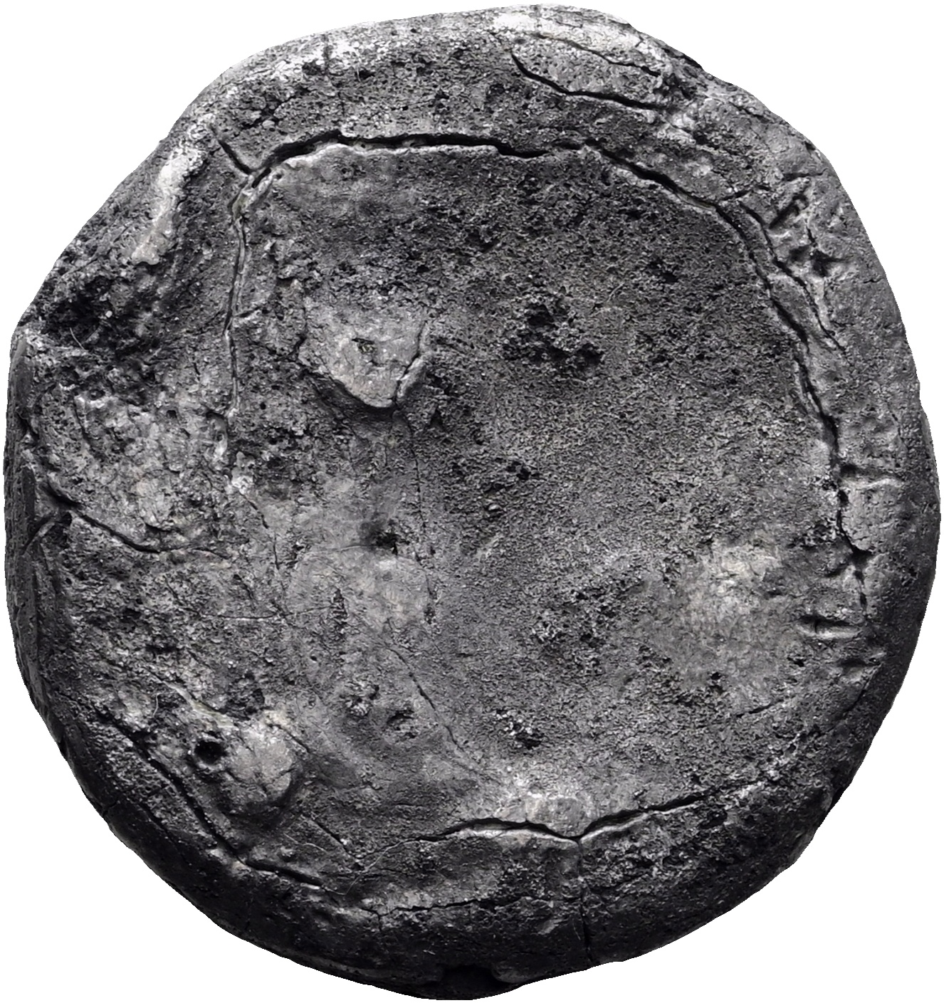 The handle broke and is missing, but traces of it are visible. Jordanov 1987, p. 675, does not comment on this, but suggests that the disc must have been attached to some device.